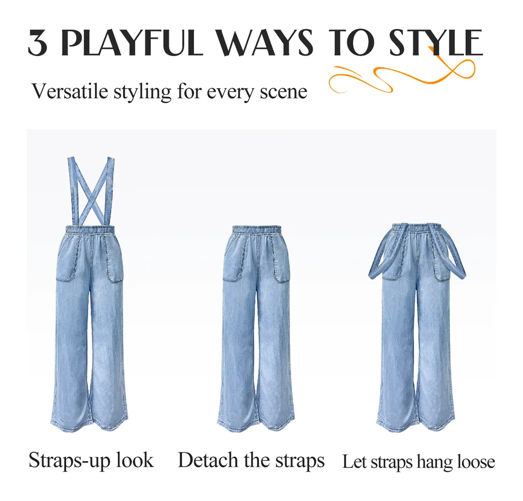 The Women's High-Waist Jeans with Convertible Wide-Leg Full-Length Design and 3-in-1 Adjustable Hem are the perfect combination of style, comfort, and sustainability. Made from breathable Tencel Lyocell fabric, these jeans keep you cool and comfortable while offering a flattering fit and versatile styling options. Whether you're heading out for a casual day or dressing up for an evening out, these jeans are the ideal addition to your wardrobe, providing a chic, eco-friendly, and comfortable option for any occasion.