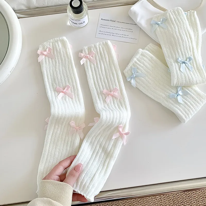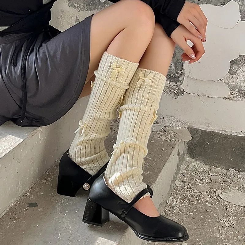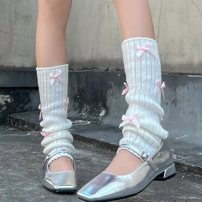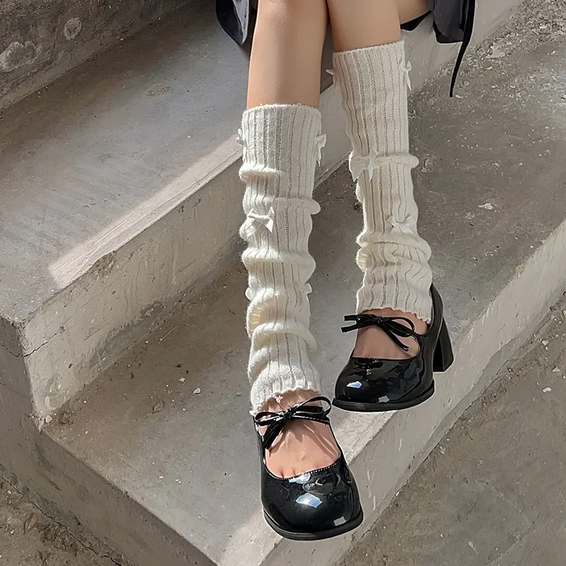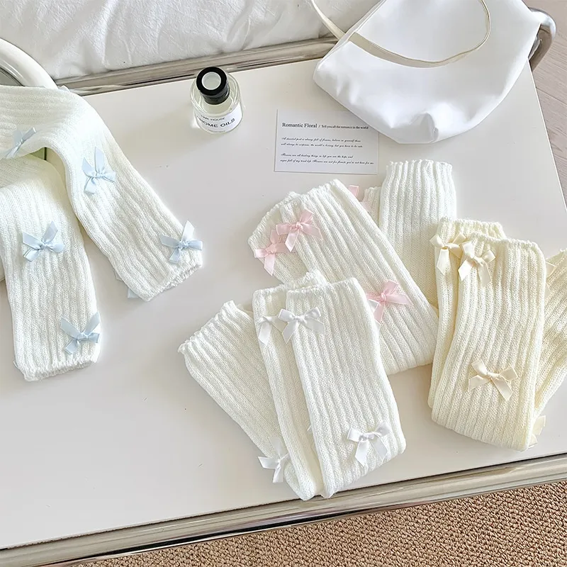 Featuring a soft bow detail and cute bunching style, these socks bring a whimsical yet fashionable touch, making them ideal for pairing with skirts, dresses, or casual streetwear looks.
