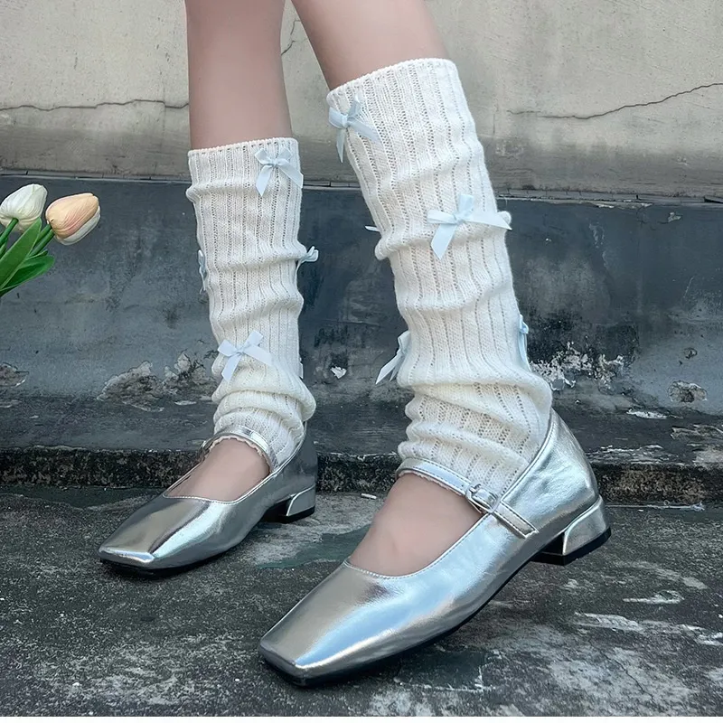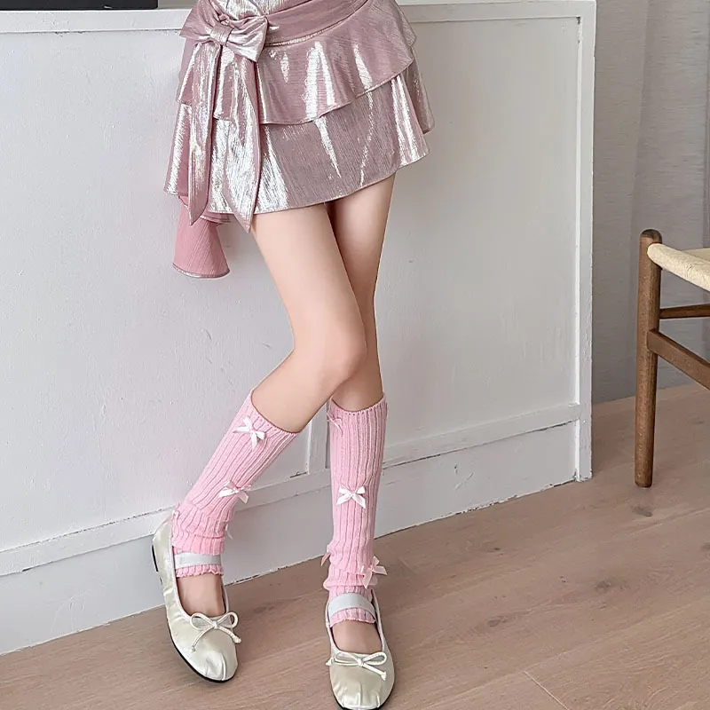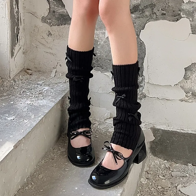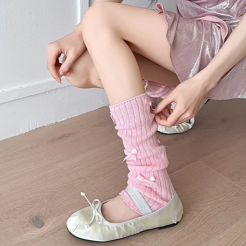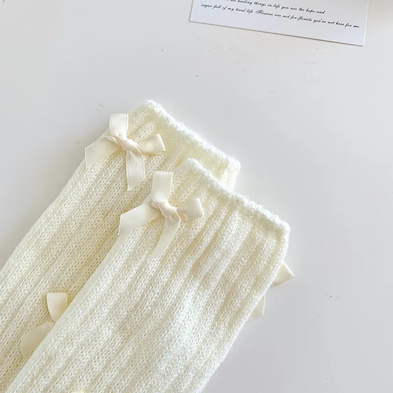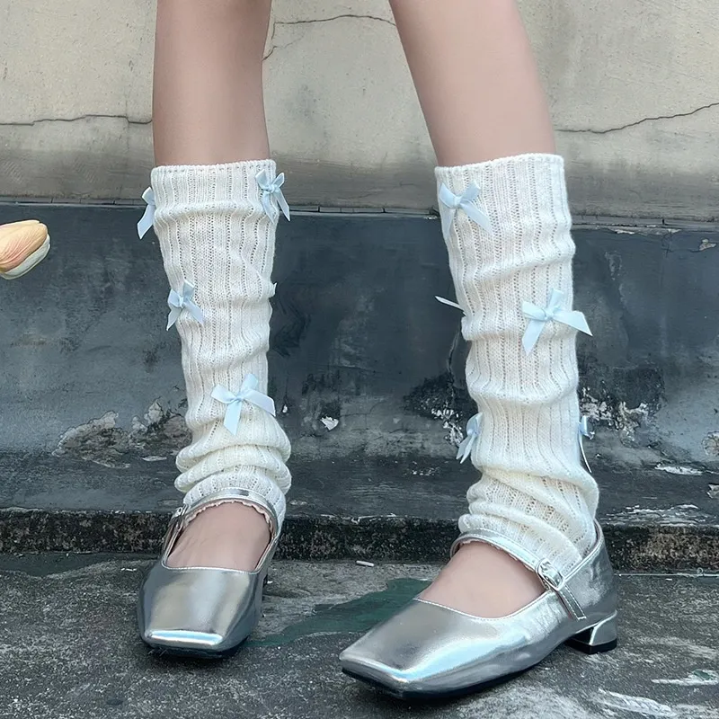 Featuring a soft bow detail and cute bunching style, these socks bring a whimsical yet fashionable touch, making them ideal for pairing with skirts, dresses, or casual streetwear looks.