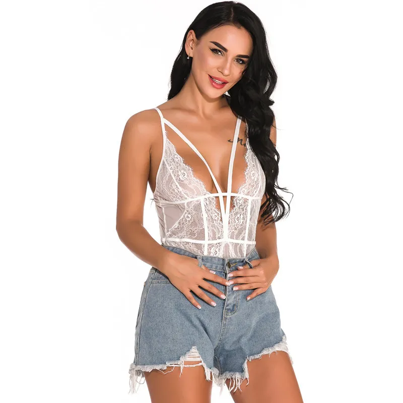 Featuring delicate lace accents and sheer mesh panels, this jumpsuit exudes sophistication and allure. The design highlights feminine curves while offering a flattering fit for various body types.