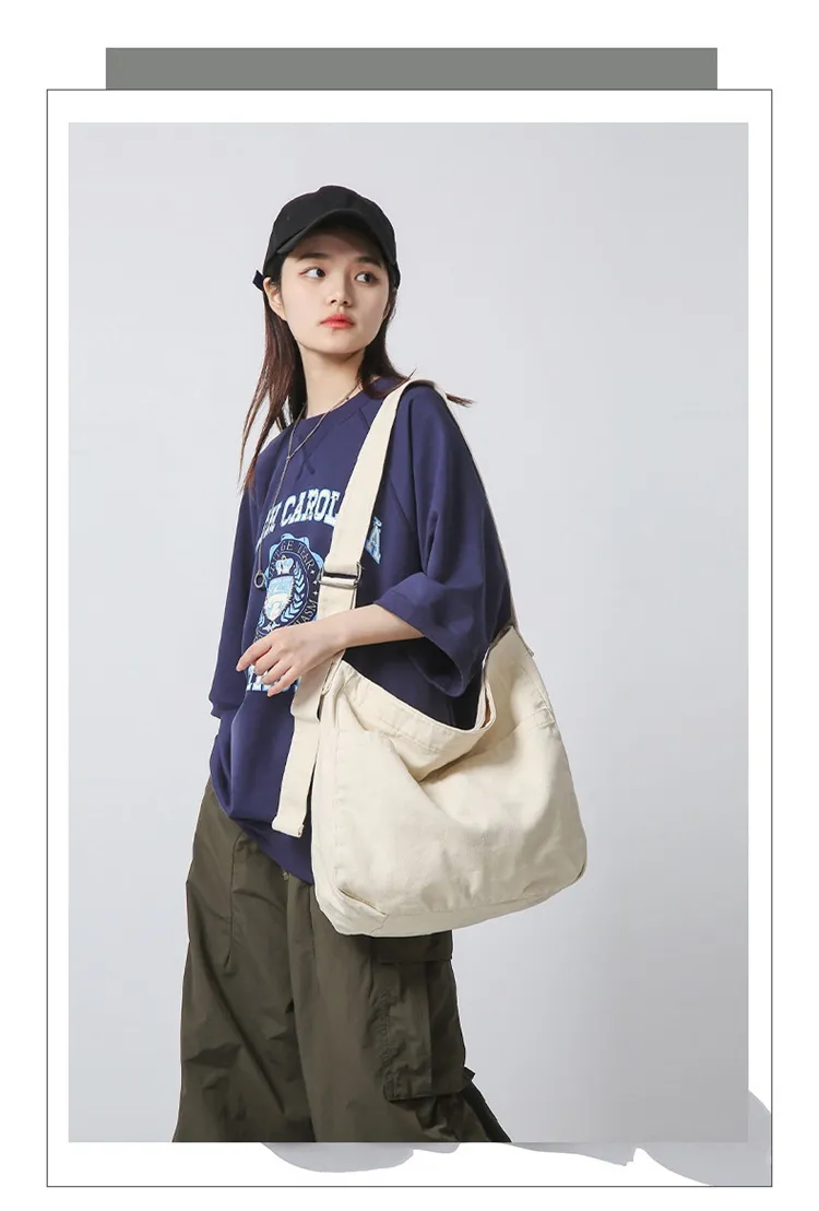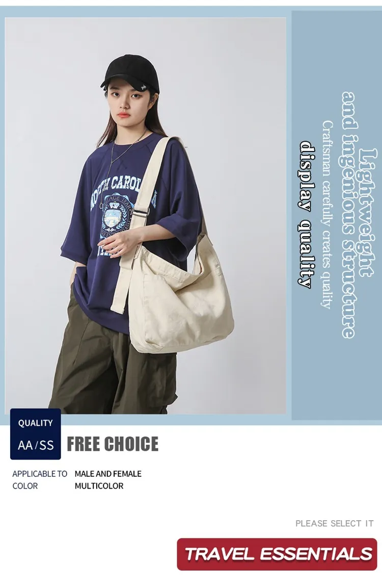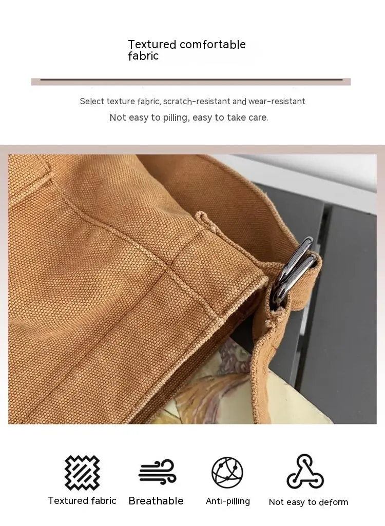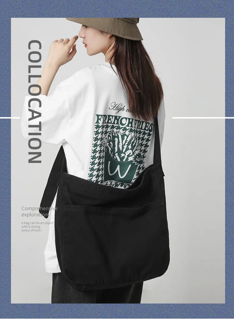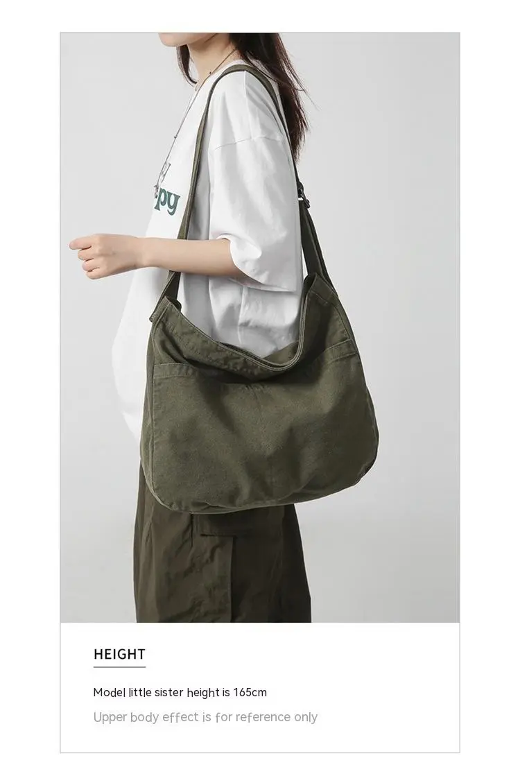 Women's Large Capacity Idle Style Artistic Simple Canvas Bag School College Students