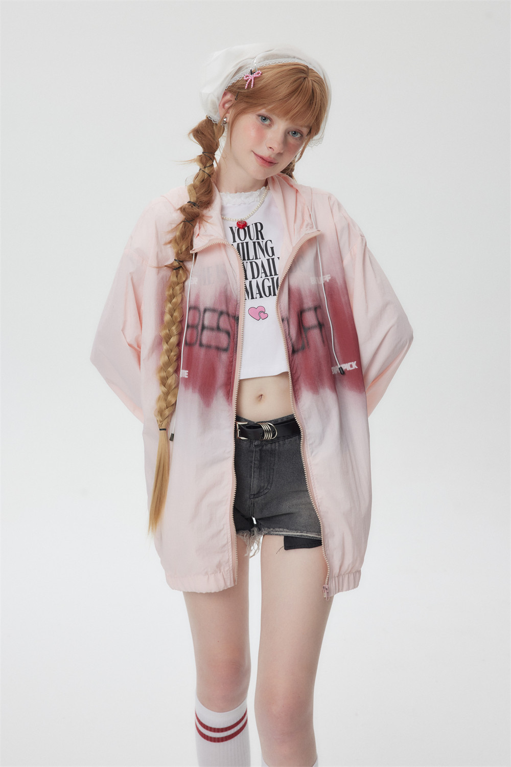 Women's Letter Printed Long Sleeve Hooded Sun-proof Top