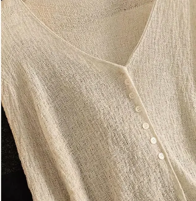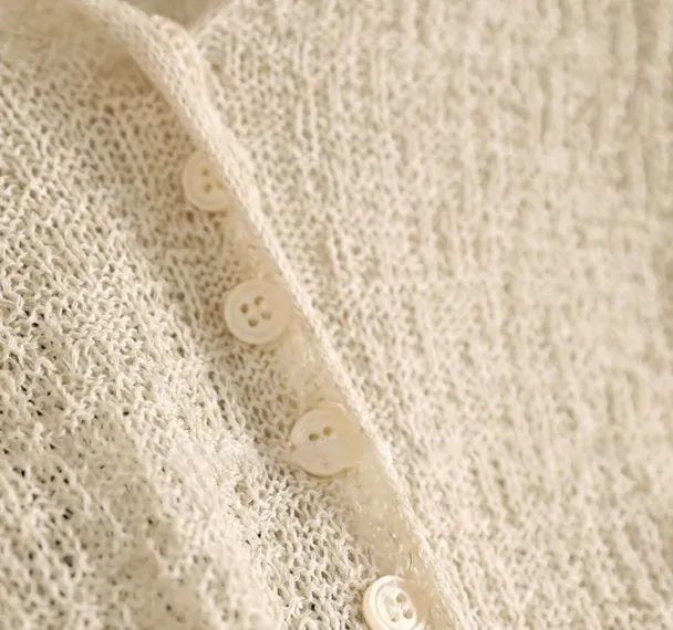 Crafted from high-quality linen, this cardigan is soft, airy, and breathable, keeping you comfortable in warmer climates or during outdoor activities. The hollow design enhances ventilation, making it perfect for summer or transitional seasons.