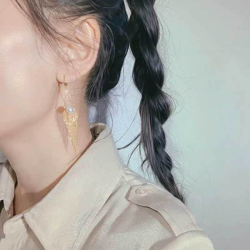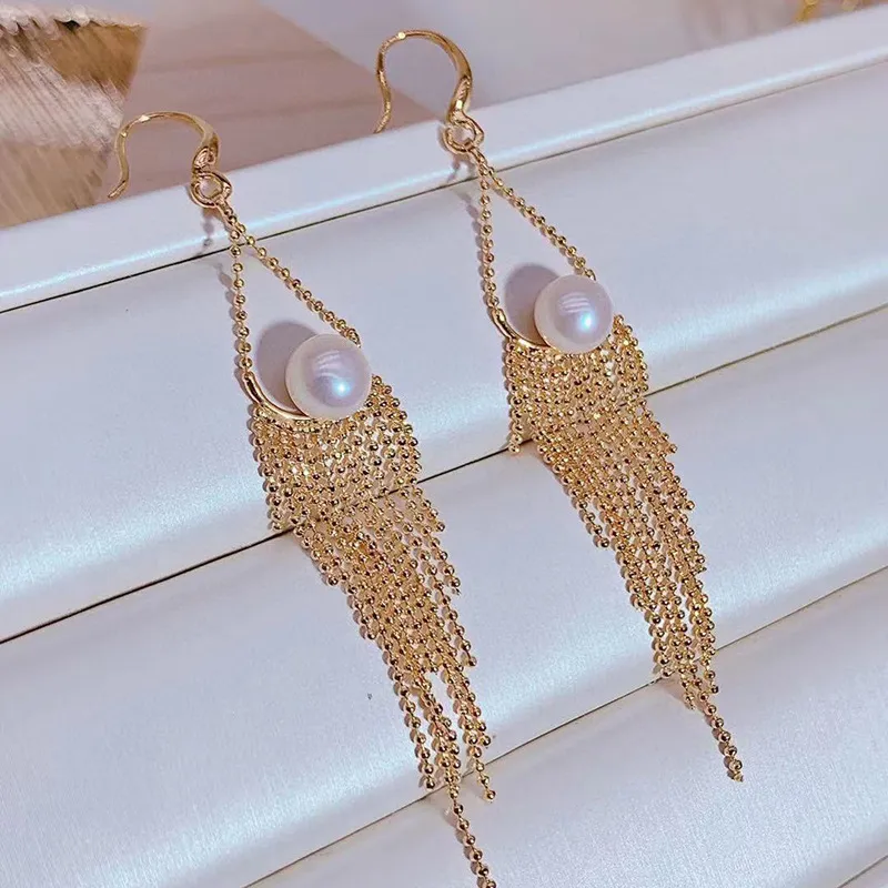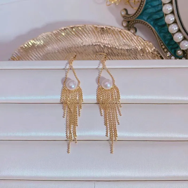 Women's Natural Freshwater Pearl Long Fringe Earrings