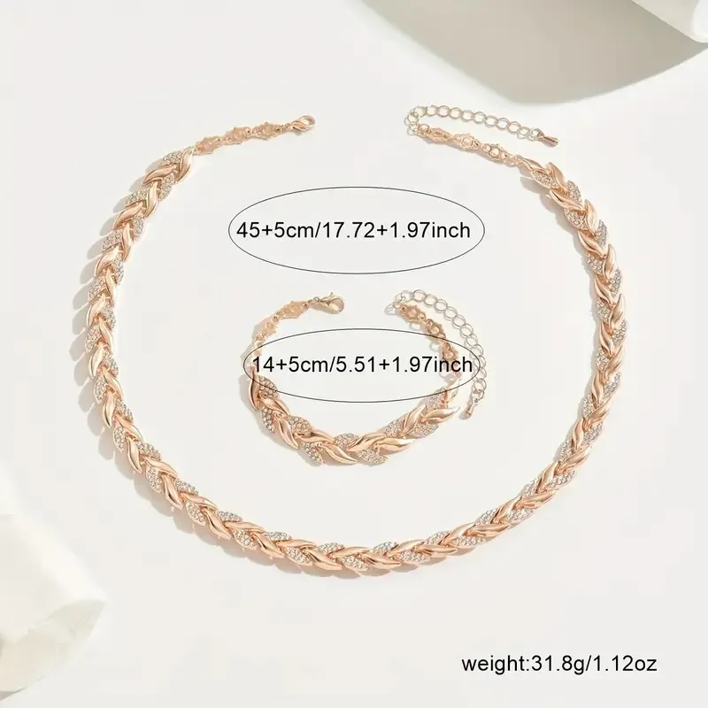 Crafted from premium materials, this affordable luxury set allows you to experience the beauty and sophistication of high-end jewelry at a fraction of the cost. Whether you're attending a formal event, a romantic dinner, or a casual gathering, this Willow Leaf Diamond Bracelet Necklace set adds just the right touch of refinement and sparkle, making you the center of attention.