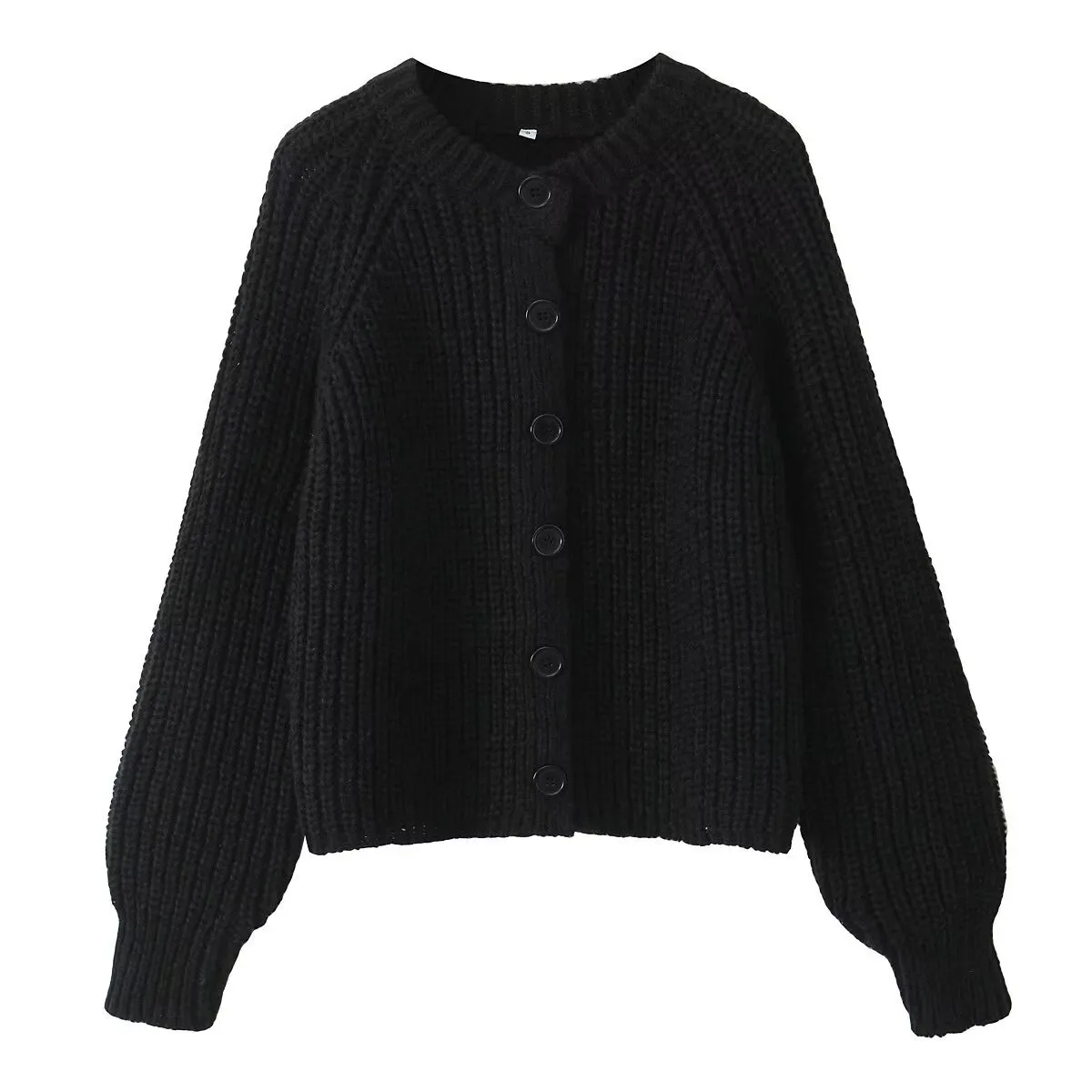 The Women's Puff Sleeve Knitted Cardigan Sweater is designed for those who love comfort and style in equal measure. This piece brings a timeless touch to your wardrobe with its flattering puff sleeves and soft, knitted fabric. Perfect for layering or wearing on its own, this cardigan is sure to become a staple in your cool-weather collection.