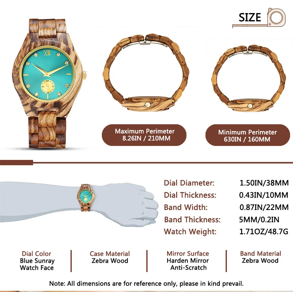 To maintain the beauty and functionality of your Women’s Quartz Wood Watch, follow these care tips: