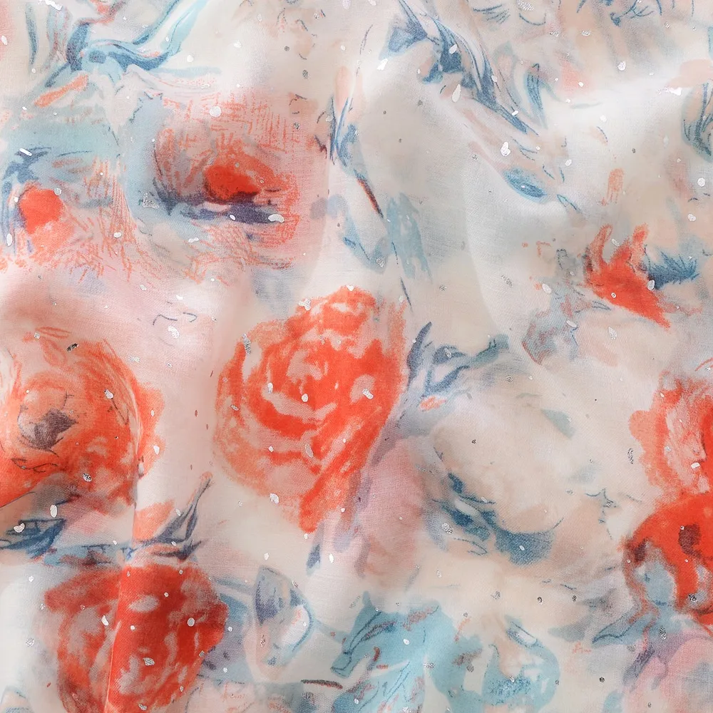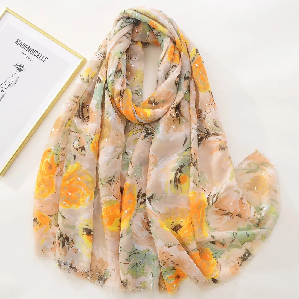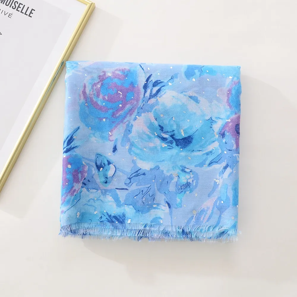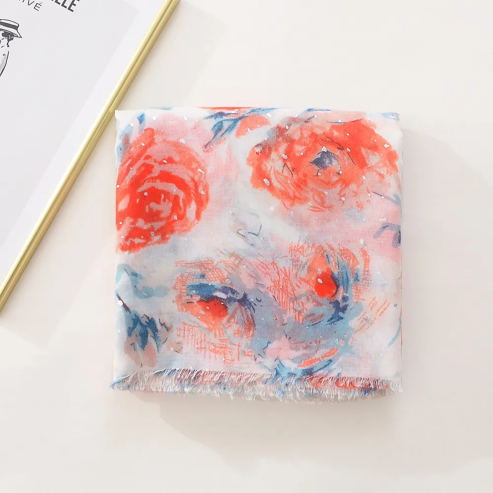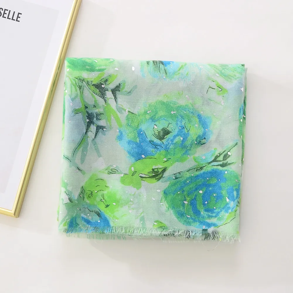 Women's Rose Bronzing Large Gauze Cotton Linen Versatile Scarf