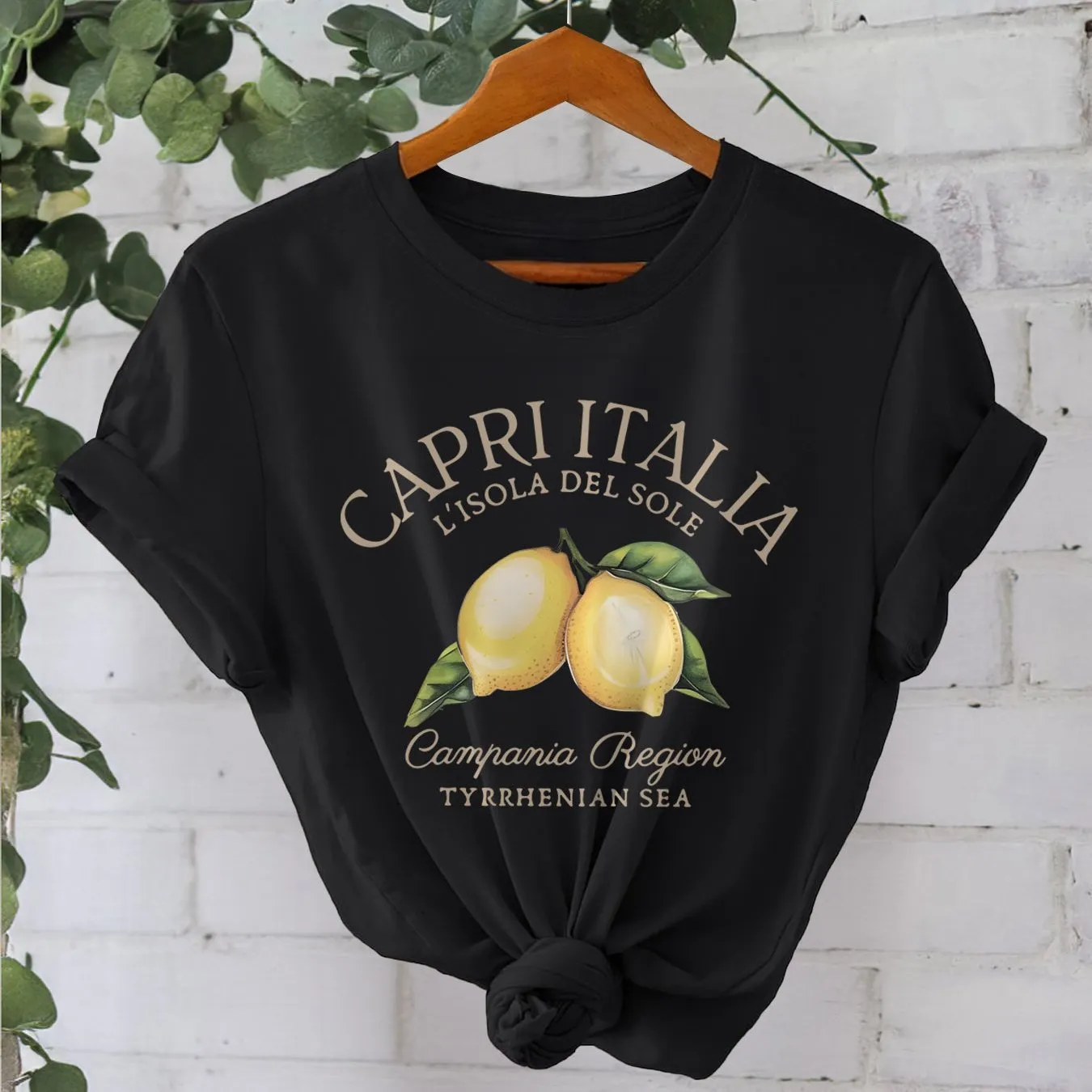 Women's Round Neck Lemon Print T-shirt Short Sleeved