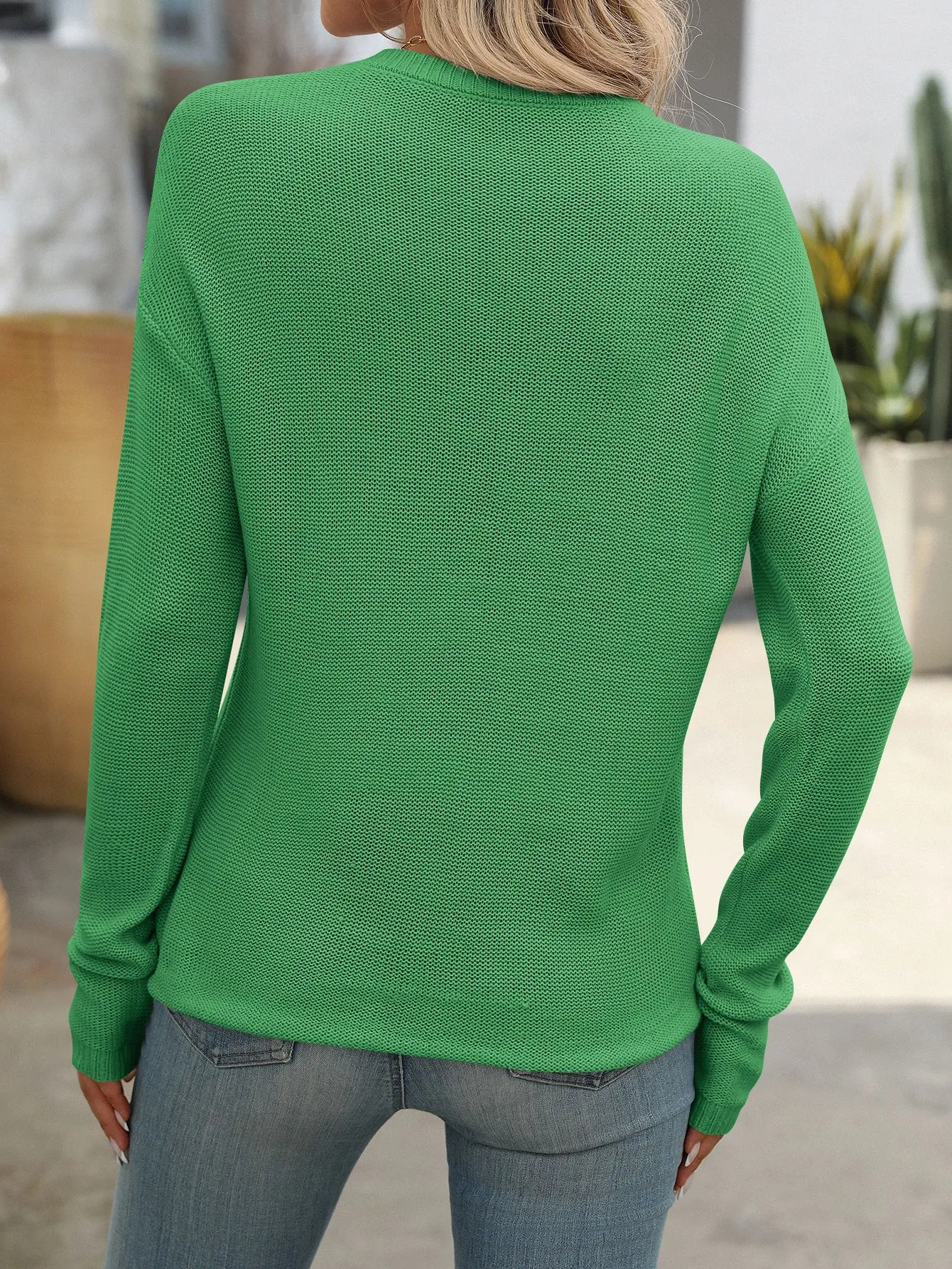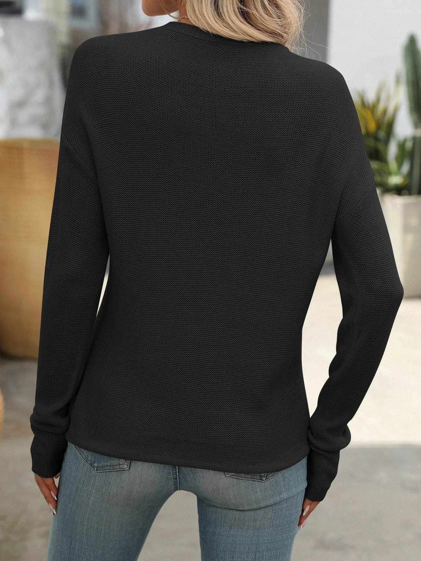 This sweater's versatile design allows you to pair it with anything from jeans to skirts, making it a staple for any wardrobe. Whether you're dressing up for a night out or keeping it casual for a day at home, this sweater fits seamlessly into any setting. The long sleeves and solid color make it easy to layer under a coat or over a shirt, providing multiple styling options.