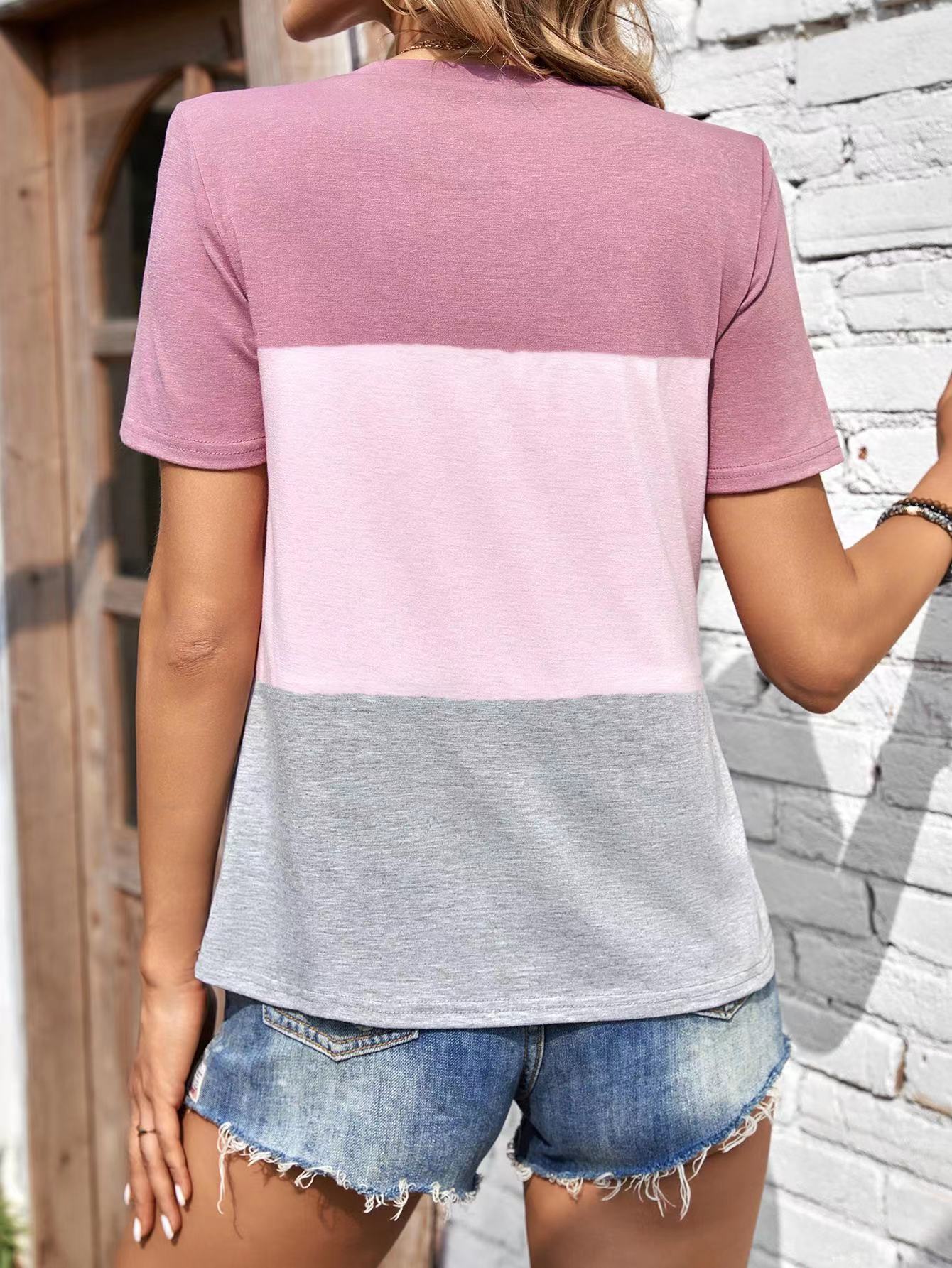 Women's Round Neck Multicolor Short-sleeved Top