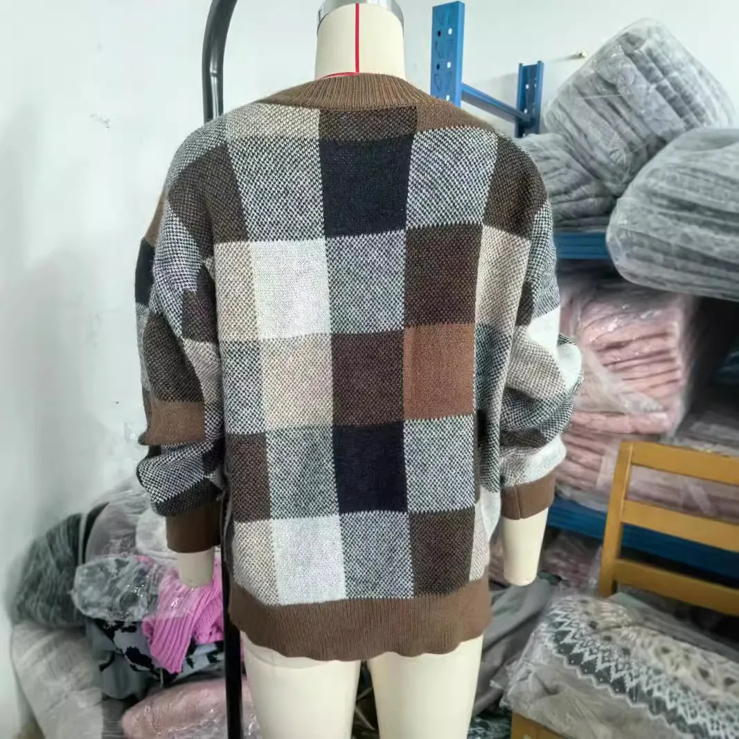 Women's Round Neck Plaid Loose-fitting Fashion Pullover Sweater