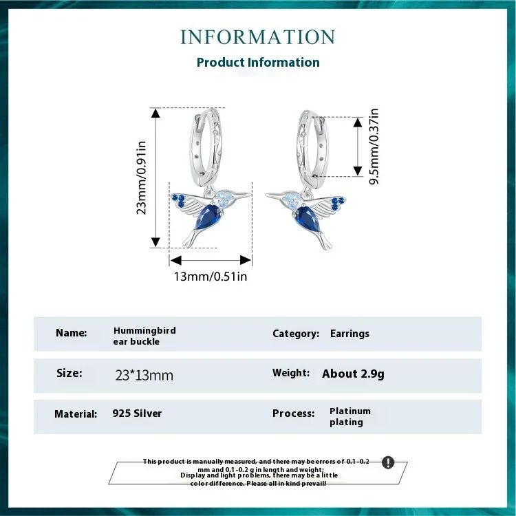 - Perfect Gift for Loved Ones: The Women’s S925 Sterling Silver All-Match Small Hummingbird Earrings make a thoughtful gift for a loved one. Whether it's a birthday, anniversary, or special celebration, these earrings are sure to delight the recipient with their delicate design and meaningful symbolism.