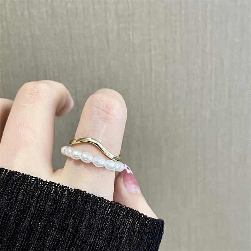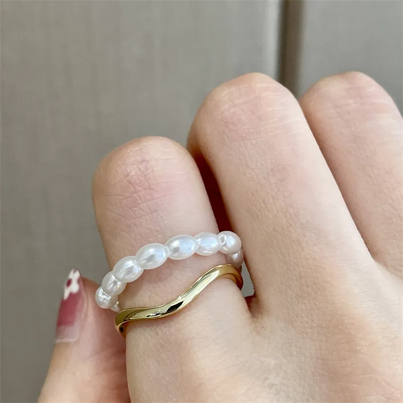 Women's Shaped Small Rice-shaped Beads Oval Pearl Ring: A Blend of Elegance and Timeless Beauty