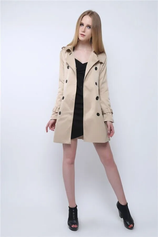 Whether you're dressing up for a business meeting, a dinner date, or keeping it casual for a weekend outing, this trench coat is a versatile addition to any wardrobe. Its classic color and design make it easy to pair with dresses, trousers, skirts, and jeans. The coat is ideal for adding an extra layer of sophistication to any look.