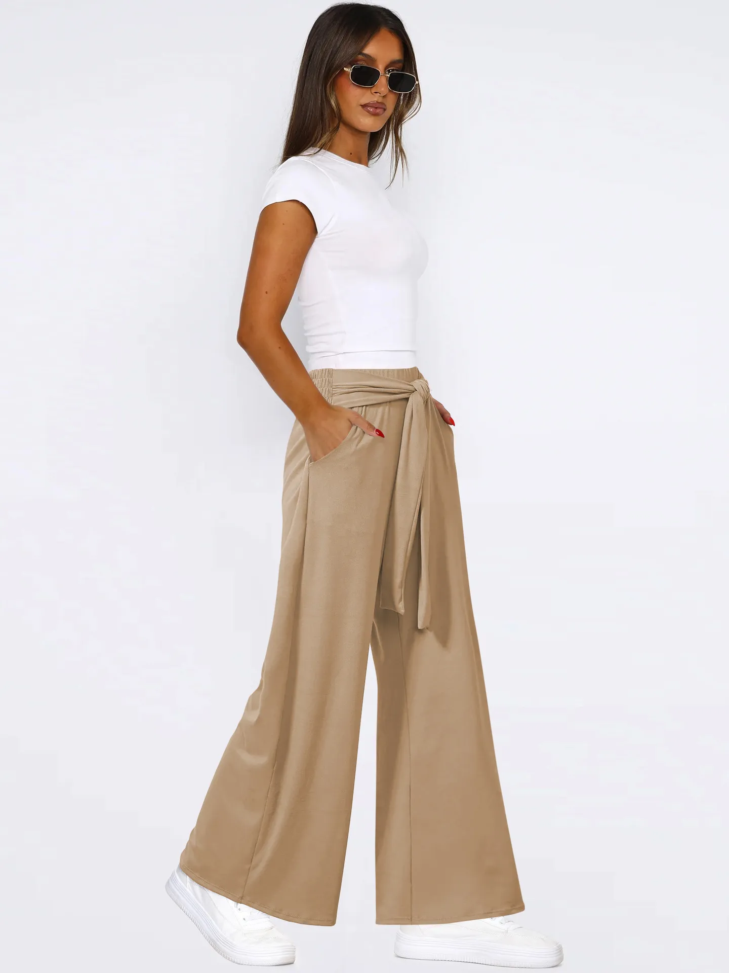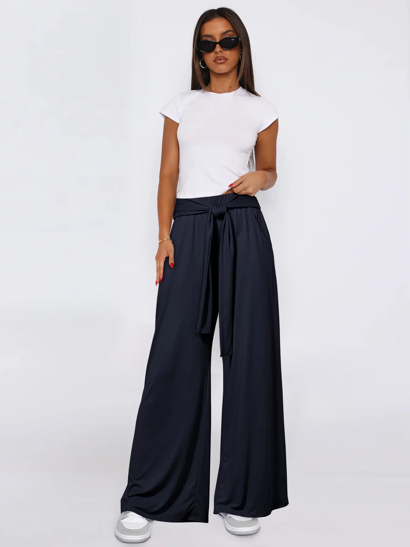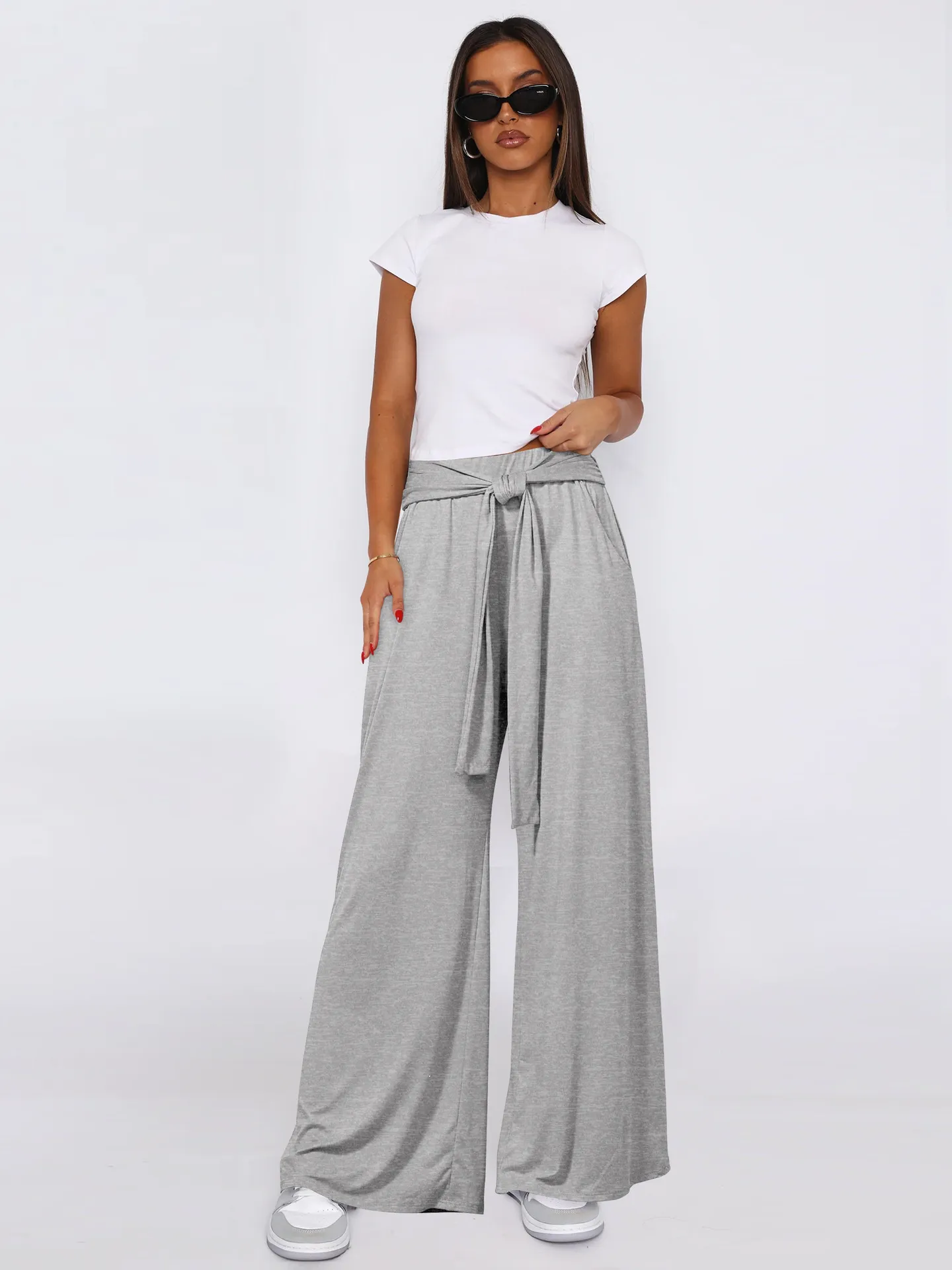 Women's Solid Color Draping Lace-up Wide-leg Pants