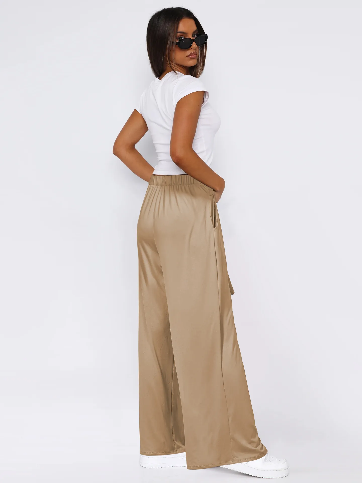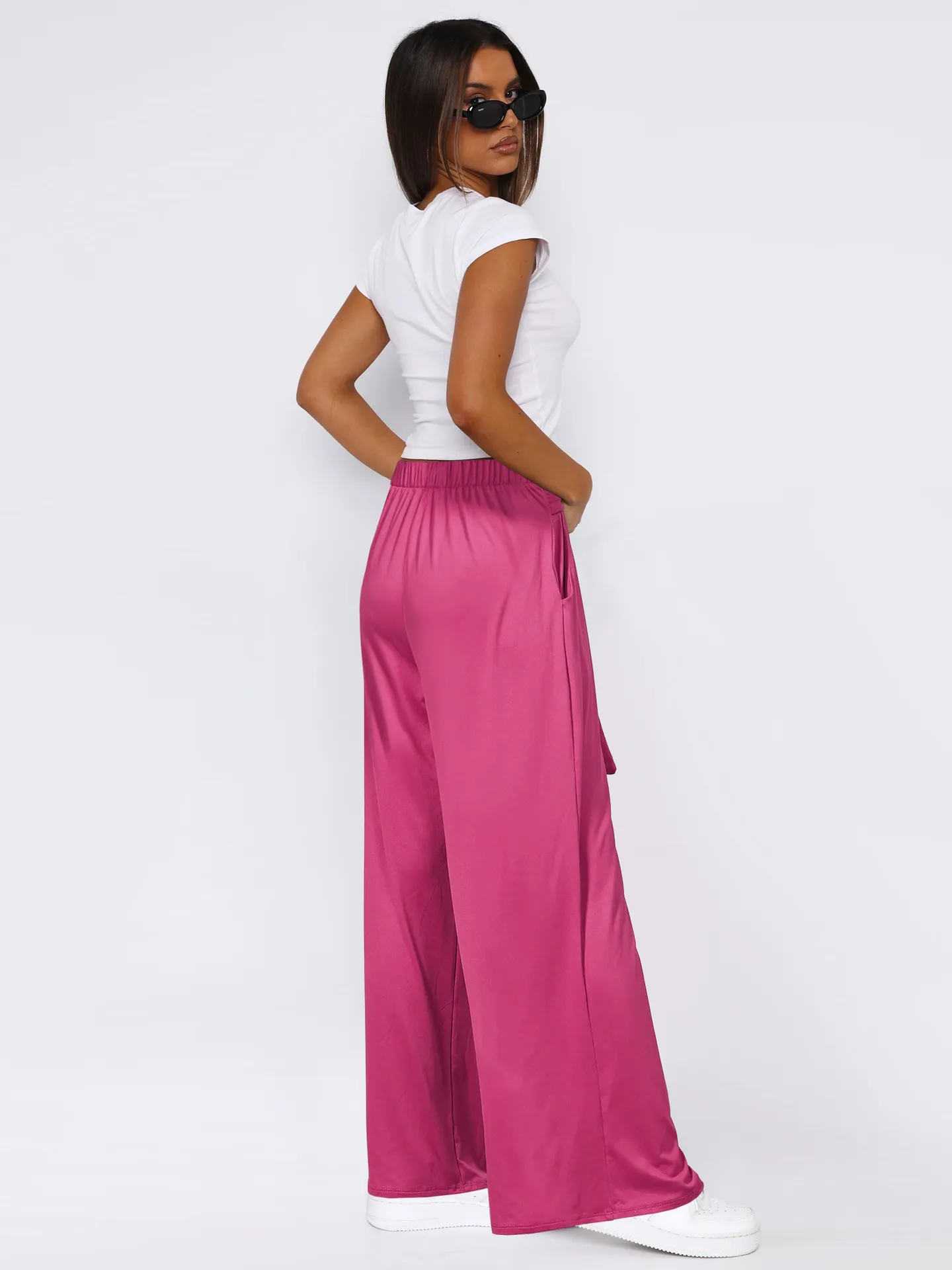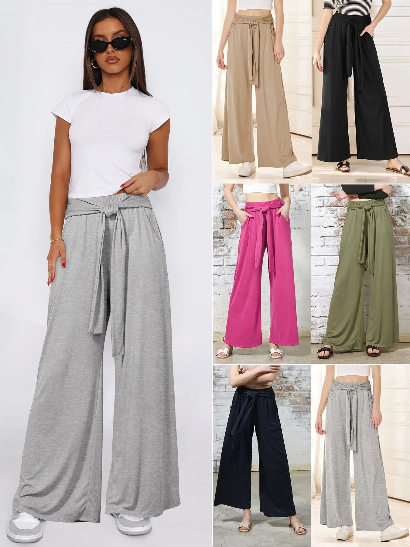 Women's Solid Color Draping Lace-up Wide-leg Pants