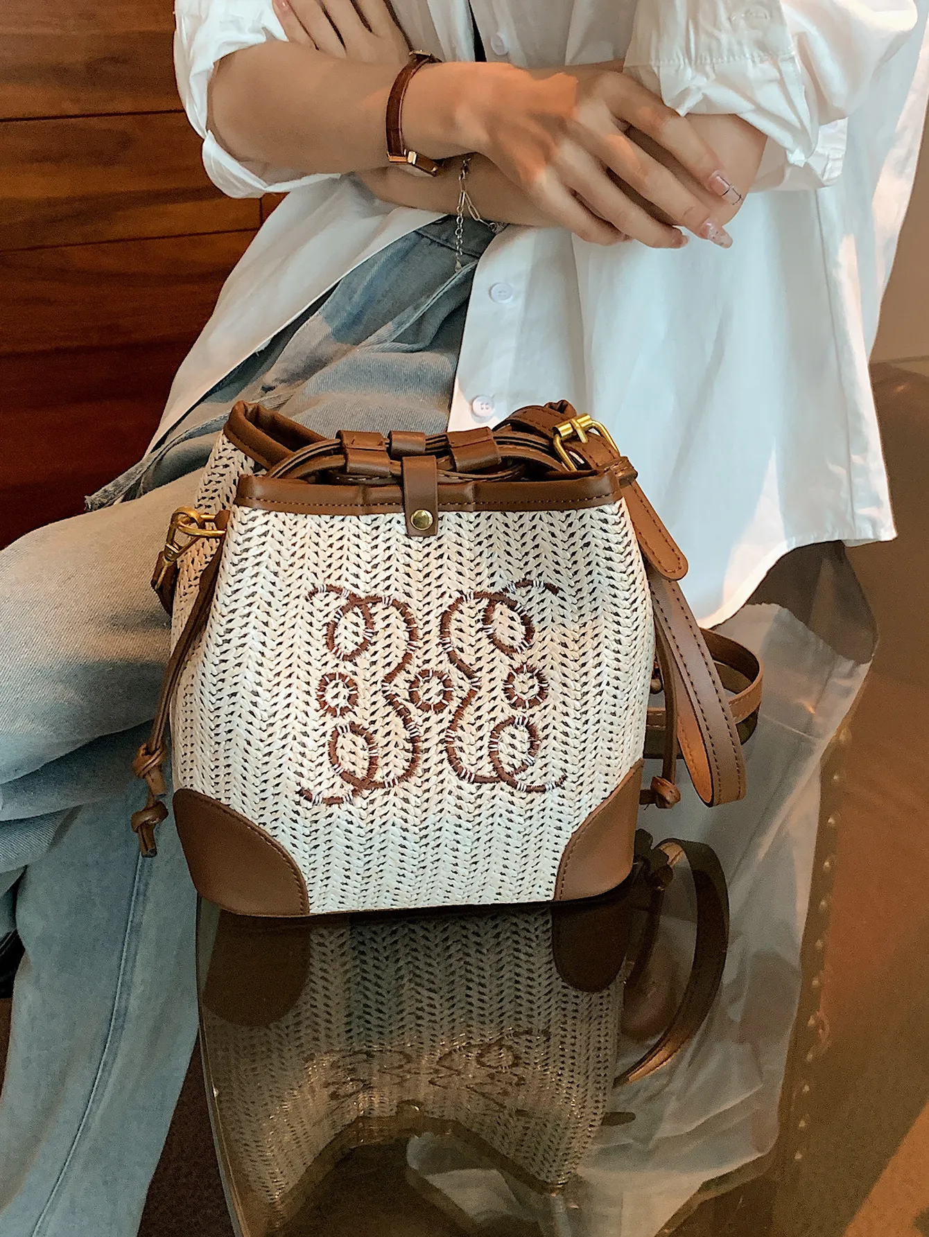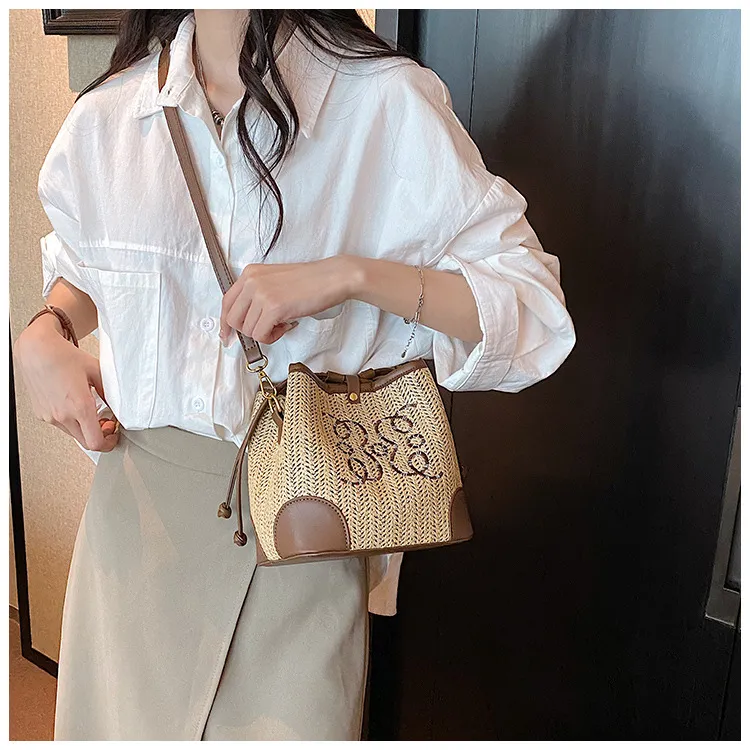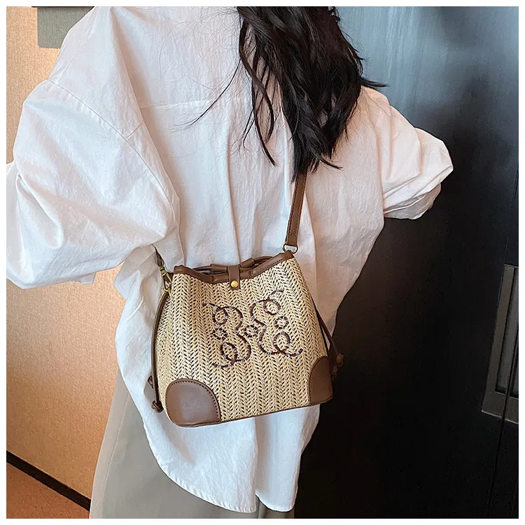 Women's Straw Seaside Vacation Beach Woven Bucket Bag