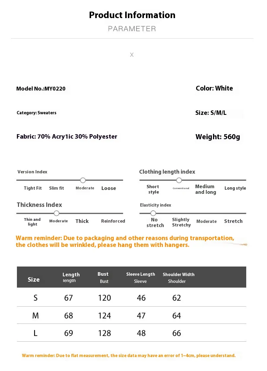 Length: medium length (65cm Sleeve length: long sleeve