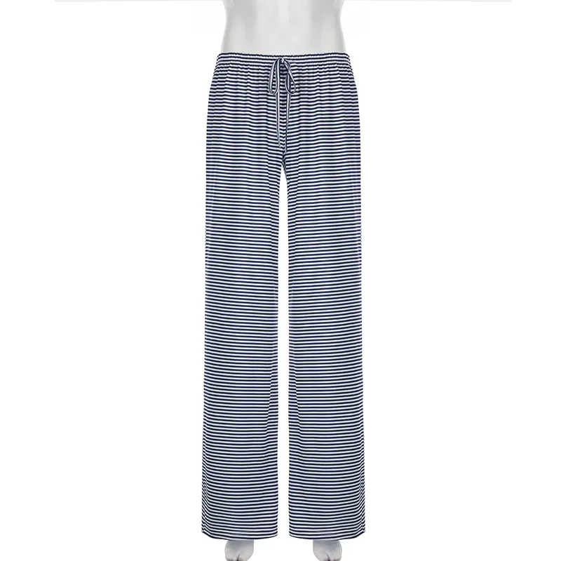 Women's Striped Print Trousers Y2K Fashion Casual Lace Up Home Straight Wide-leg Pants