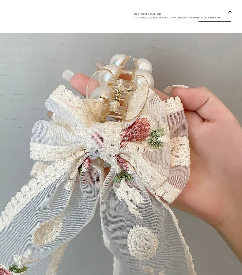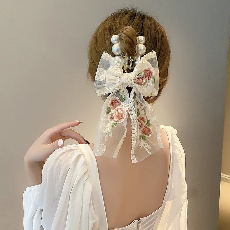 Women's Sweet Lace Flower Bow Large Grab Hair Clip
