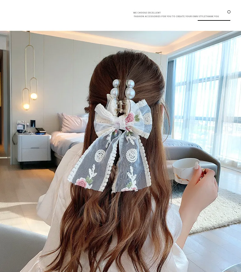 Women's Sweet Lace Flower Bow Large Grab Hair Clip