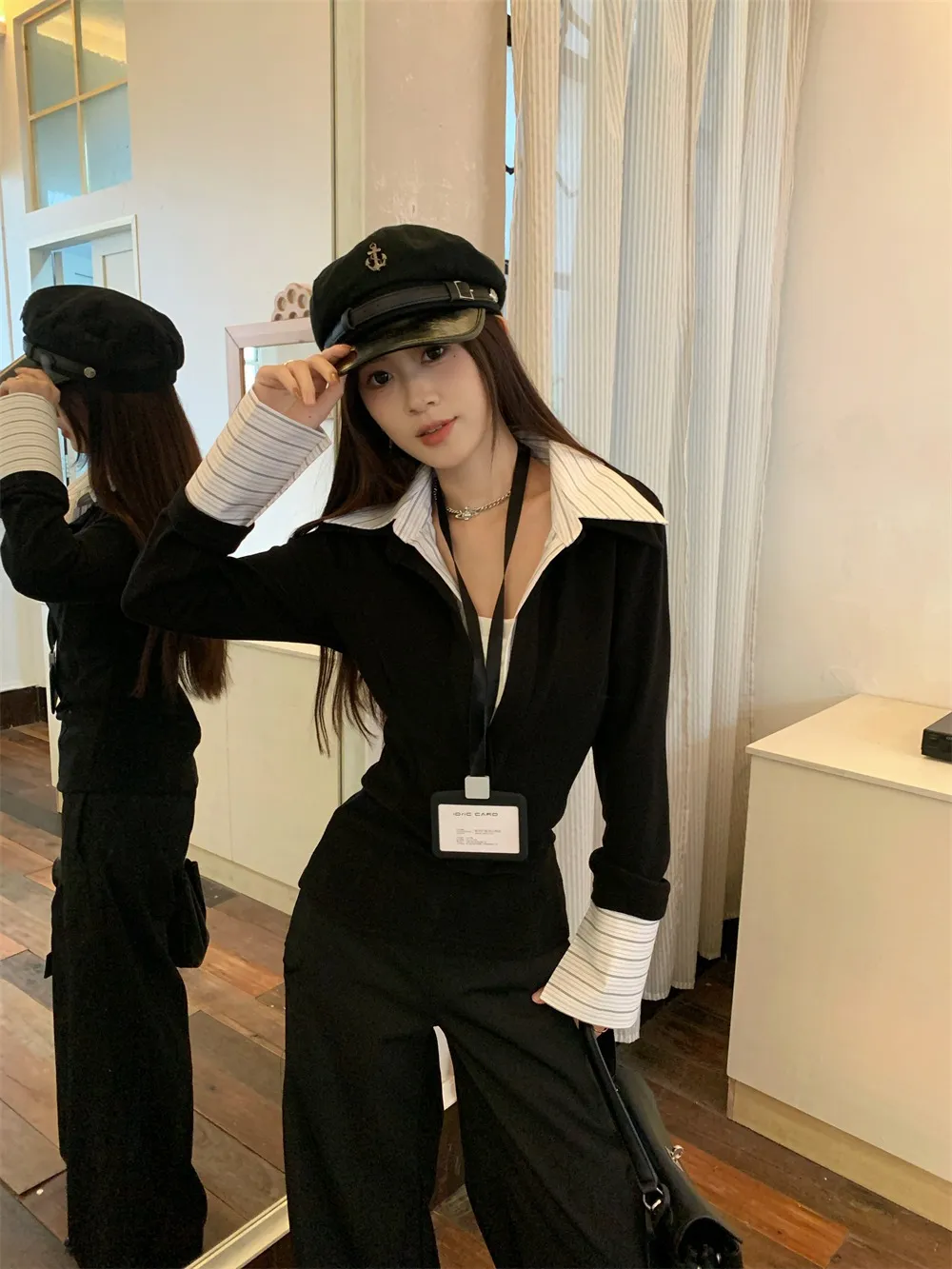 Color: Black fake two pieces