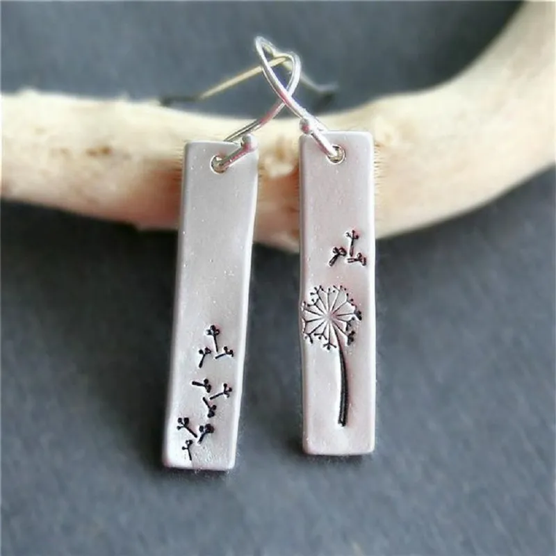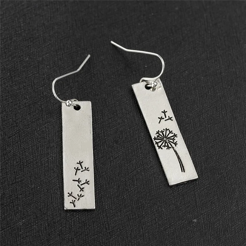 Women's Vintage Rectangle Pendant Dandelion Earrings