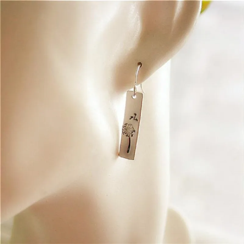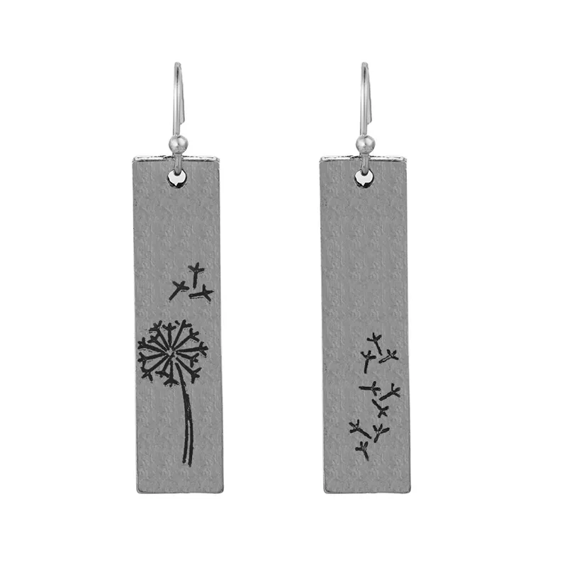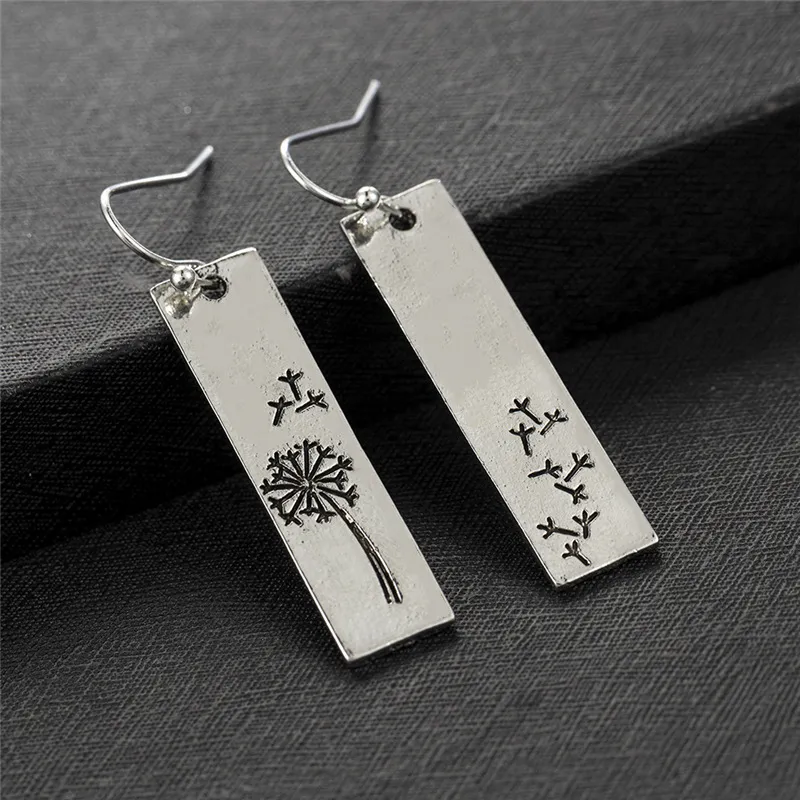 Women's Vintage Rectangle Pendant Dandelion Earrings