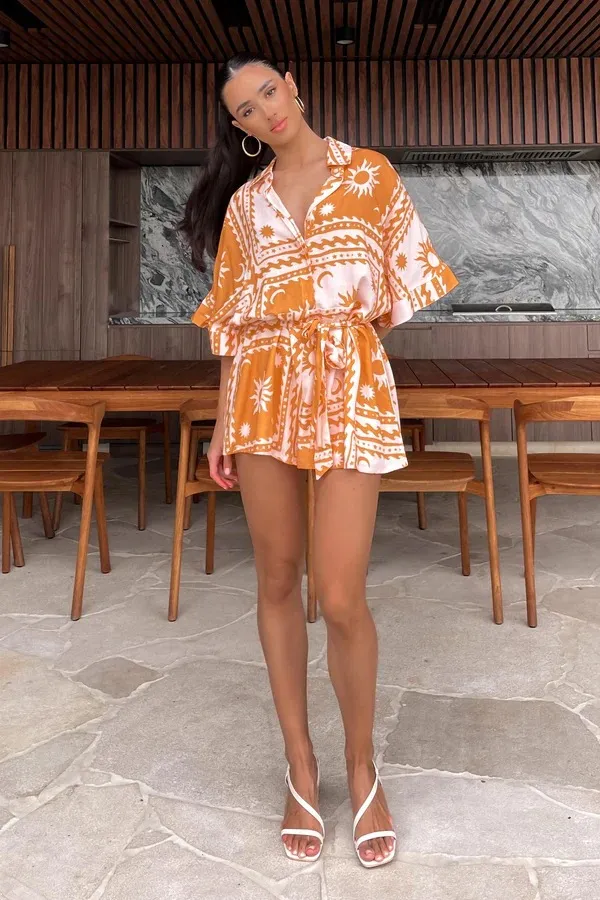 Shop the Women's Waist-controlled Lace-up Geometric Printed Sexy Jumpsuit for a bold, flattering look. Perfect for parties and evening events with a waist-enhancing lace-up design.