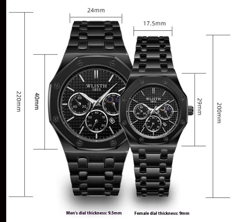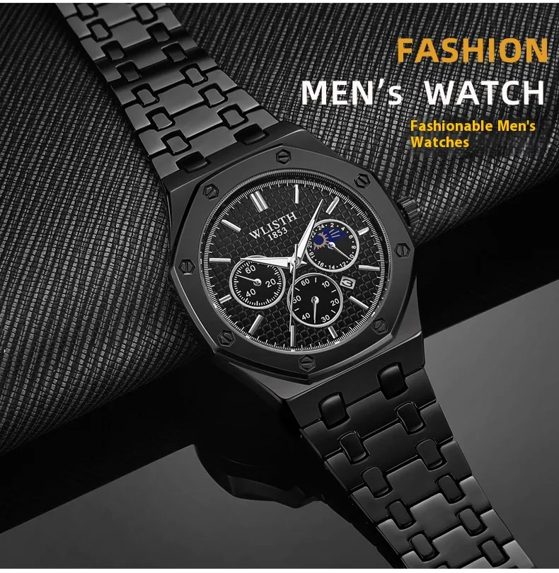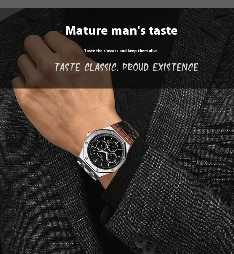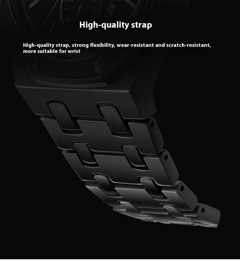 The stainless steel strap is designed for both strength and style. It’s resistant to corrosion, ensuring longevity while providing a modern, polished look. The sleek steel finish also complements any outfit, making it a versatile choice for both professional and casual settings.