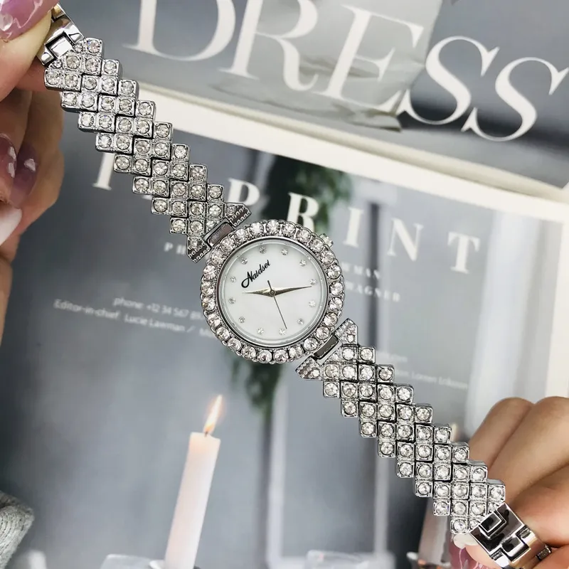 The most striking feature of this luxury women's watch is the full diamond surface, which covers both the bracelet and the dial. Each diamond is expertly cut and set to create a dazzling display of light. Whether in natural daylight or under artificial lighting, the diamonds sparkle brilliantly, adding an air of elegance to your wrist. This watch will instantly elevate your style and leave a lasting impression.