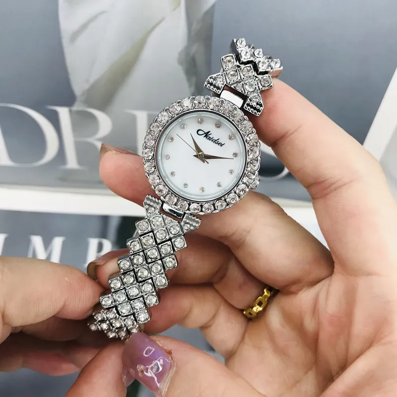 Introducing the Women's Watch Luxury Diamond Fritillary Surface Small Dial Bracelet Full Diamond – a stunning timepiece that epitomizes elegance, luxury, and sophistication. This exquisite watch is designed to dazzle with its full diamond embellishments and a fritillary surface that captures the light from every angle, making it the perfect accessory for any occasion. Whether you're attending a formal event, going out for a casual evening, or simply looking to add a touch of glamour to your everyday look, this luxury diamond watch is the ultimate choice.