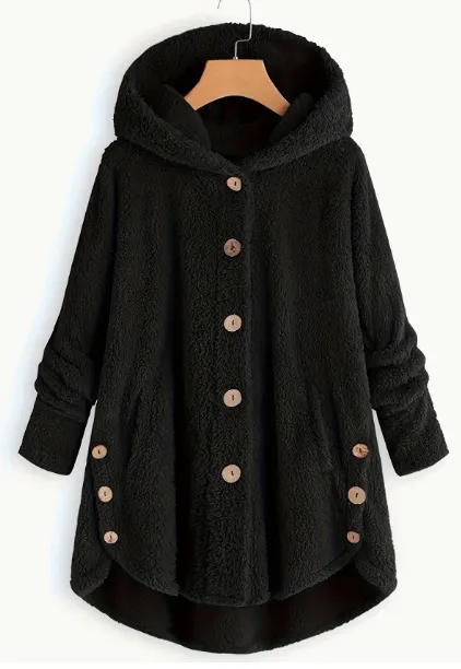 plus size winter jacket, women's plush jacket, hooded cardigan coat, loose fit winter coat, buttoned winter jacket, plus size casual jacket, women's cozy jacket, plus size cardigan coat, warm winter jacket for women, stylish winter outerwear, comfortable plus size coat