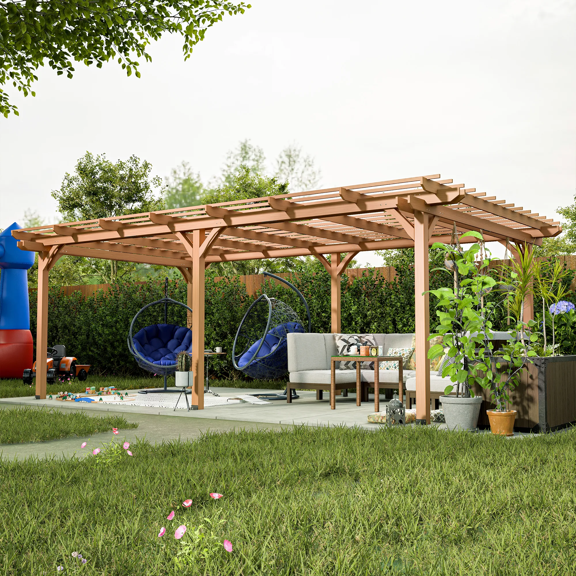 The wooden construction offers a natural, organic appearance that enhances the beauty of your outdoor space, providing a serene and inviting