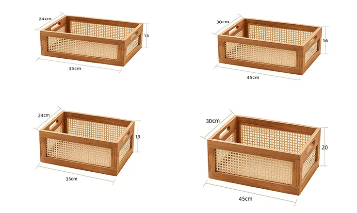 Wood storage crates are box‑style containers crafted from solid wood or engineered wood planks joined together to form a rugged, open‑faced crate. Commonly made from woods such as pine, fir, cedar, oak, or reclaimed timber, these crates combine natural grain patterns and rich texture with functional strength. Each crate typically includes solid sides, a sturdy base, and cut‑out handles or rope attachments to make lifting and repositioning simple and ergonomic.