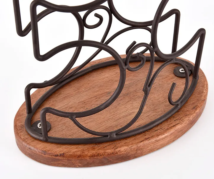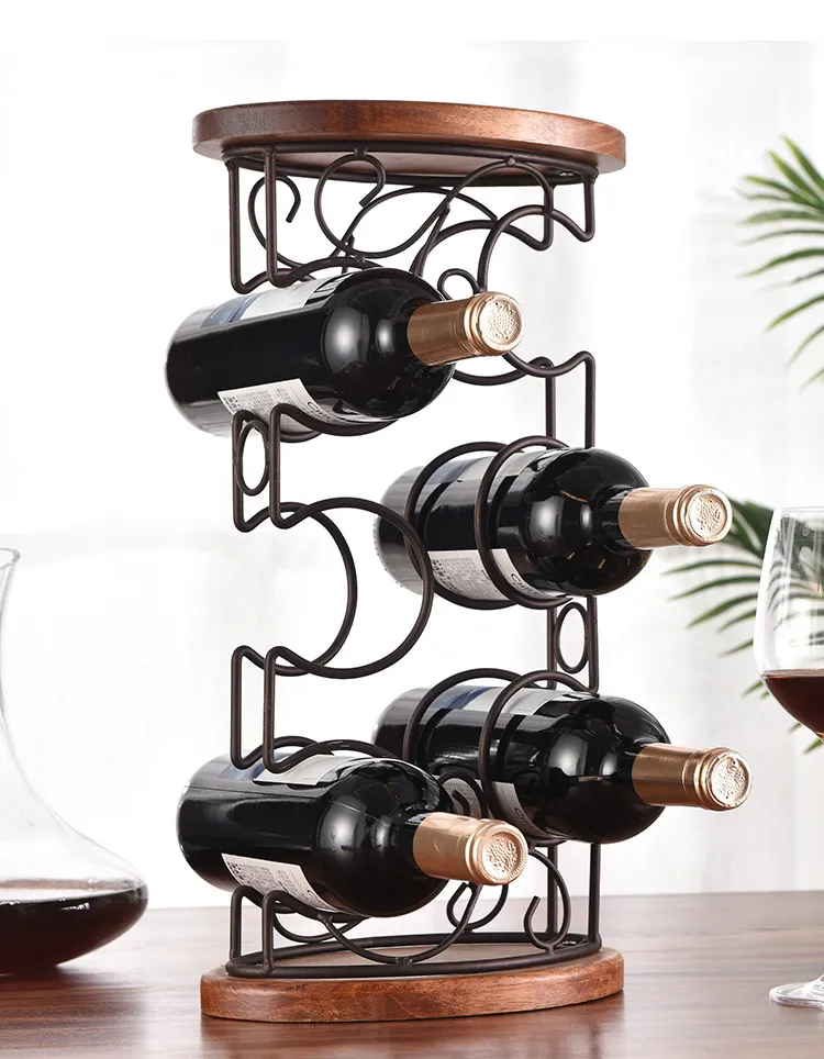 Wooden Bottom Wrought Iron Six-bottle Wine Rack Dining Table Wine Cabinet Decoration