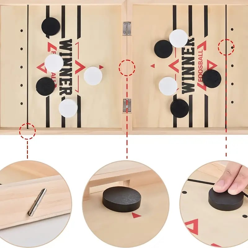 - Educational Value: This unique game provides an engaging way to improve children's hand-eye coordination and fine motor skills. As they focus on aiming their pucks through the small gate, children inadvertently train their minds and hands to work harmoniously, promoting their overall cognitive development.