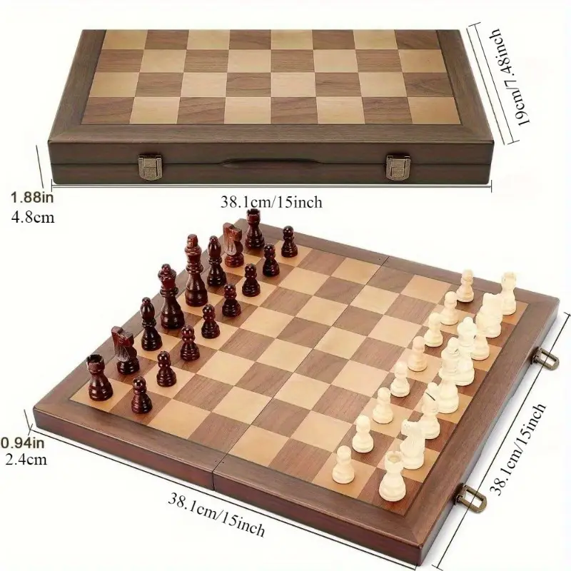 Wooden Chess Set Foldable, 38.1cm/15inch