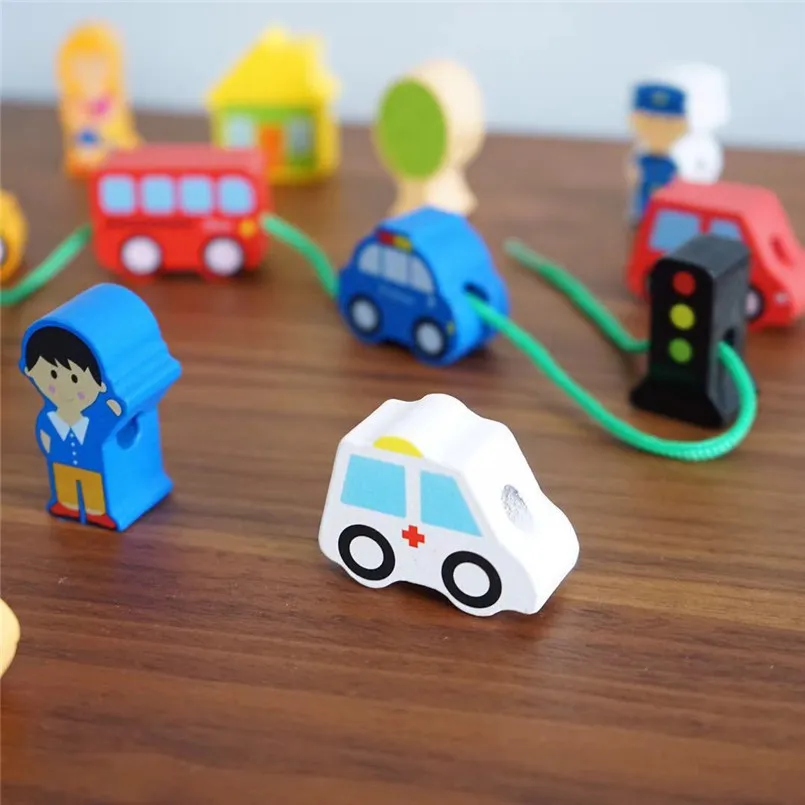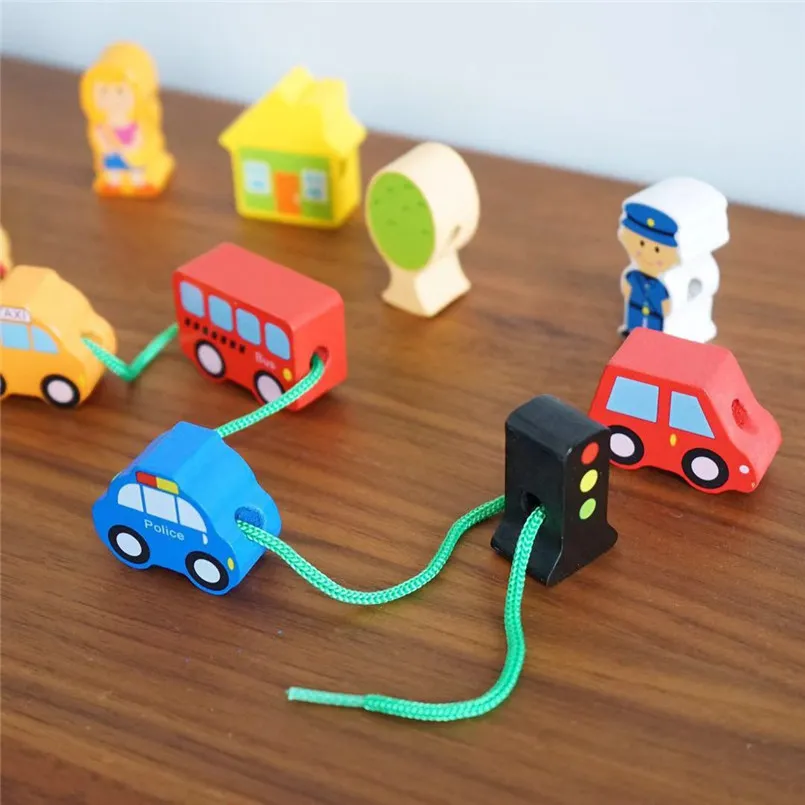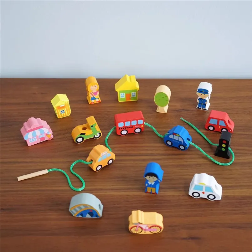 Wooden DIY City String Rope Toy For Children Educational Wear Beads Games Colorful Wood Building Block Set Montessori Toys GiftsÂ