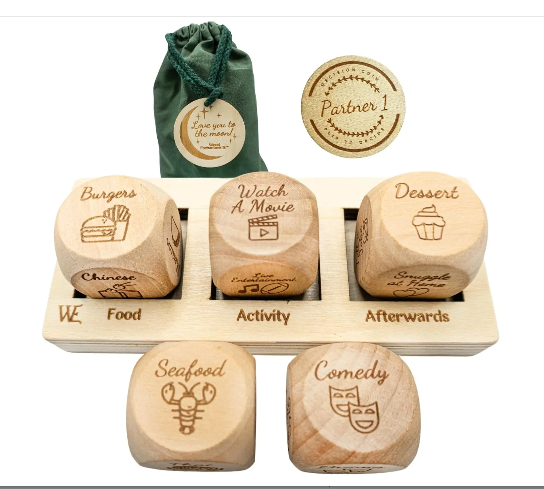 Eco-friendly and Sustainable: Made from natural wood, these dice and box promote sustainability and offer an eco-friendly
