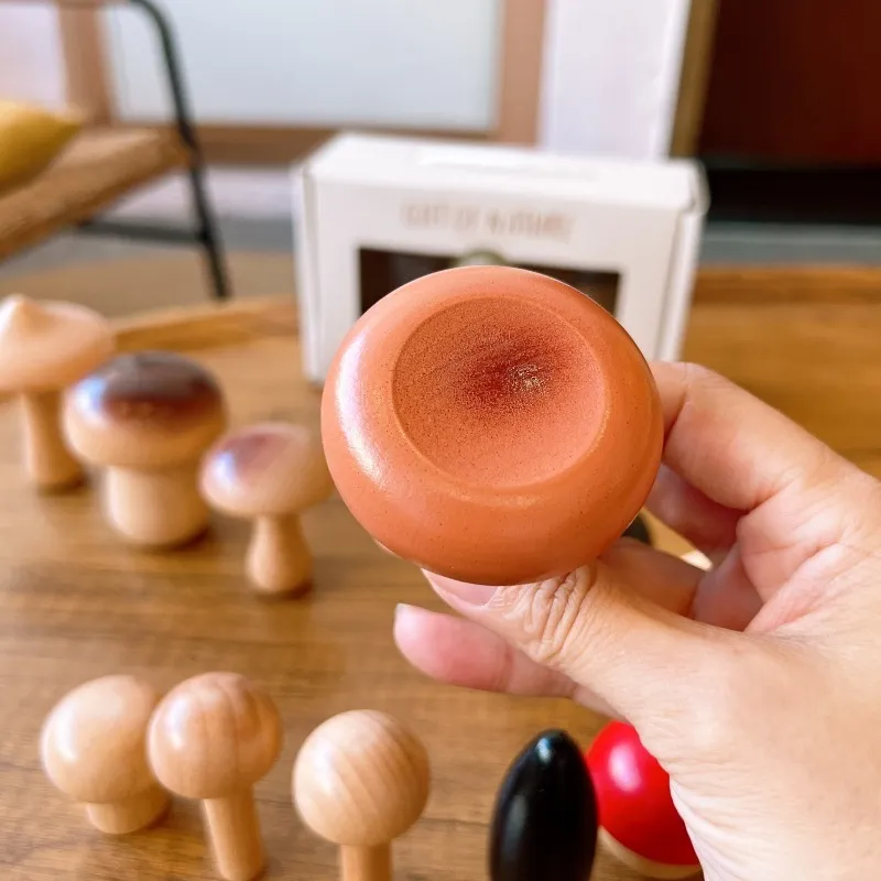 Wooden Mushroom Shape Pieces: Features mushroom-shaped blocks that can be stacked in various ways, encouraging imaginative