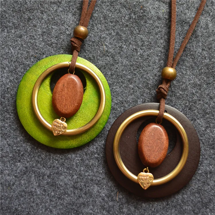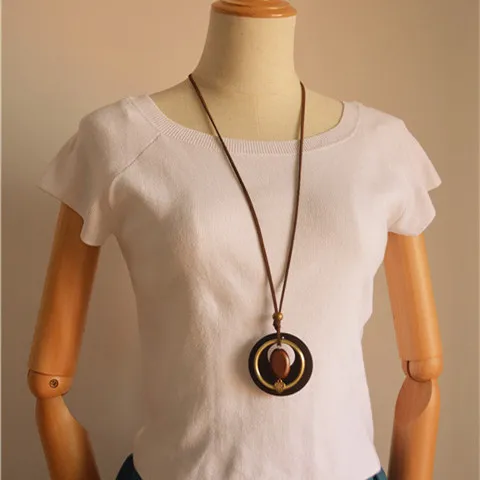 Wooden Ring Pendant Long Necklace Women's Dress