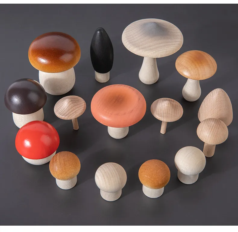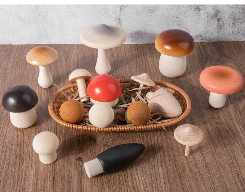 nature while developing essential cognitive and motor skills. This beautifully crafted toy set features colorful wooden mushrooms, designed