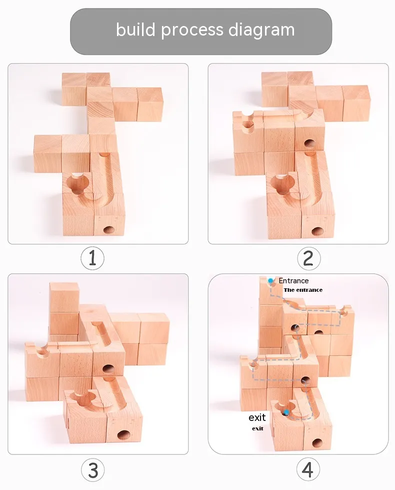- Customizable Designs: Mix and match wooden tracks and pipes to build different marble paths.