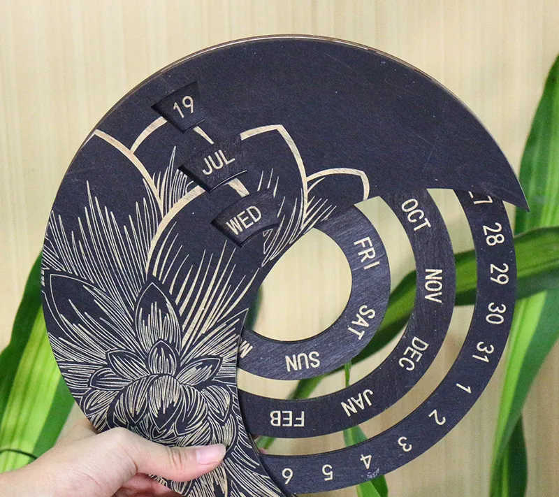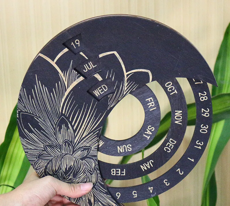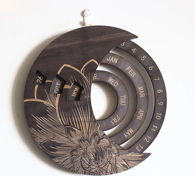 The Wooden Wall Calendar Custom Round Perpetual Calendar is a beautifully crafted timepiece designed to bring both functionality and style to your home or office. Made from high-quality wood, this round perpetual calendar features a minimalist yet elegant design that complements any décor. Unlike traditional calendars, the perpetual design allows you to use it year after year, eliminating the need to replace it annually. The rotating mechanism displays the day, date, and month, making it easy to adjust and track time with just a simple turn. Its timeless aesthetic not only serves as a practical tool but also doubles as a stunning decorative piece.