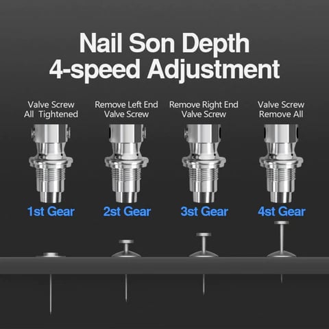 The adjustable depth control allows you to set the exact depth of the nail for professional results.