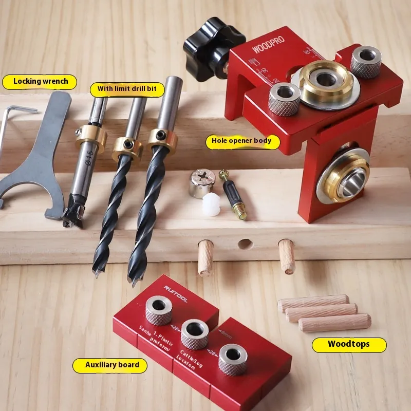 (with brass stop ring) large wrench small wrench wood tip 3 auxiliary plates, locator body SetC:8/10/15mm drill bit (with carbon steel stop