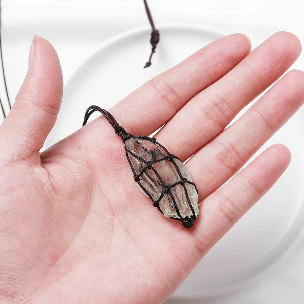 Item number: Green crystal net pocket pendant (brown handmade rope)