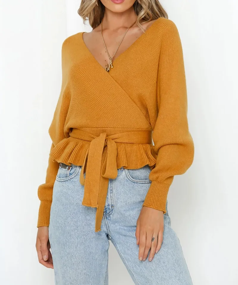 Crafted from soft, high-quality materials like cotton, wool, or knitted blends, this sweater embraces the latest trends while providing the ultimate in comfort. The wrap front design adds an extra level of sophistication, making it a wardrobe staple that will never go out of style.